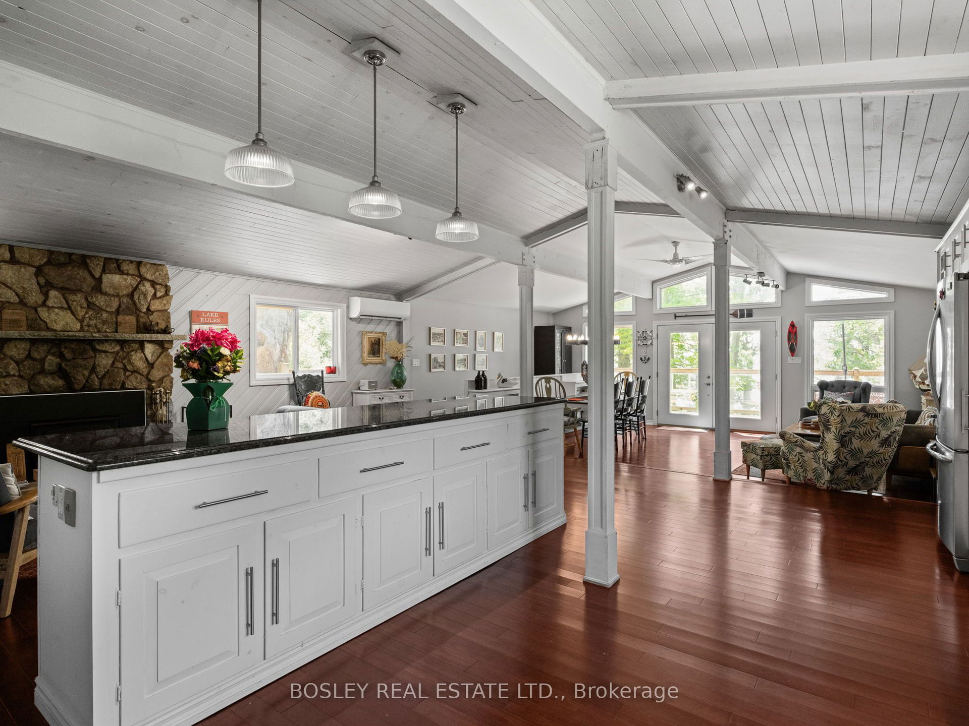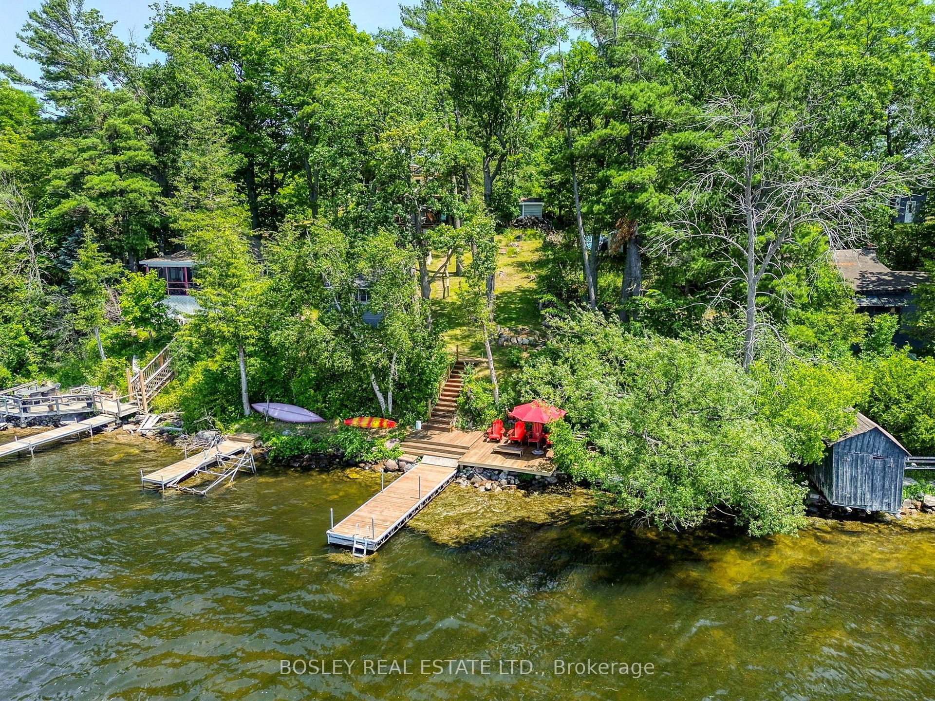 Welcome to your dream retreat on the shores of beautiful Rice Lake – just 1.5 hours from downtown Toronto. Perfectly nestled in a peaceful, forested setting, this beautifully renovated, four-season lakeside home offers the ultimate in comfort, style, and serenity. Wake up each day to the sights and sounds of nature, with stunning lake views, picturesque islands, and breathtaking sunsets just steps from your door. This exceptional property features crystal-clear waters, towering trees, and a secluded atmosphere, making it the ideal getaway or year-round residence. Inside, the home boasts a spacious open-concept layout, featuring three comfortable bedrooms and a full bathroom on the main level. The oversized kitchen is a chefs dream, complete with granite countertops and seamless access to an inviting dining area – perfect for family meals or entertaining guests. You’ll also appreciate the convenience of main-floor laundry. The fully finished lower level offers even more living space, with a generous sitting area, an additional full bathroom, and direct walkout access to an expansive 1,600+ sq ft wrap-around deck. Whether your’e enjoying your morning coffee in solitude or hosting a lively summer gathering, this space was designed for connection and relaxation. A charming, recently renovated bunkie provides additional accommodations and includes its own elevated viewing deck – the perfect spot to soak in uninterrupted waterfront vistas. Two brand-new docks, newly installed stairs, and a lakeside deck make accessing the water a breeze, offering endless opportunities for swimming, boating, and fishing just moments from your doorstep. Whether your’e searching for a serene family escape or a full-time waterfront residence, this rare Rice Lake gem offers the perfect blend of luxury, comfort, and natural beauty.